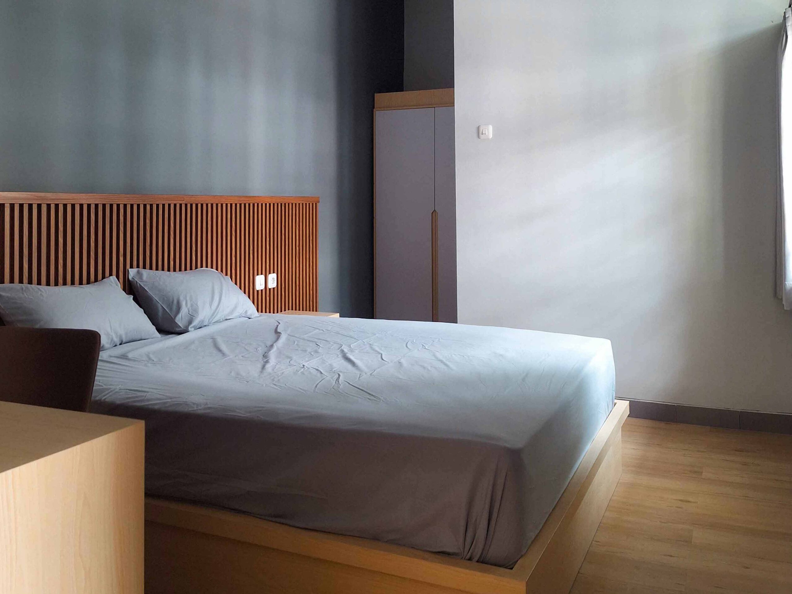 mebuat ruang kamar menjadi nyaman caranya bisa dari pencahayaan, penggunaan material dari tekstur dan warna. Pada desain renovasi kost kali ini, kita mengunakan background dinding dengan warna deep agar menjadi aksen dan juga menambahkan ragam warna yang membuat nyaman.